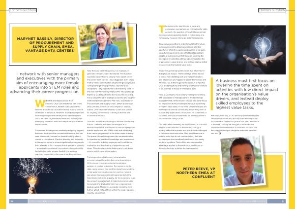 Take the data centre business , for example , in general it remains male-dominated . The balance needs to be rectified to ensure more talent enters the sector from outside . As an Egyptian-born single mother with a construction engineering background , I am speaking from experience . But there are exceptions – my opportunity to transfer my skills to the data centre industry finally came four years ago thanks to Colt Data Centre Services who recruited me as global head of strategic sourcing and supplier relationship management . And now , as Director of Procurement and Supply Chain , EMEA at Vantage Data Centers , I serve on the company ’ s Justice , Equity , Diversity and Inclusivity Council as part of its ongoing commitment to being a diverse and inclusive workplace .
