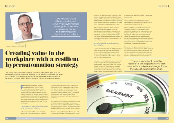 Tim Hood , Vice President – EMEA and APAC of Hyland , discusses the concept of hyperautomation and how it can elevate the workplace from monotonous , to purposeful and engaging . Hood explores the critical factors to consider when developing your hyperautomation strategy .