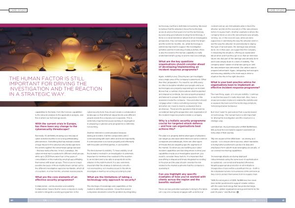 THE HUMAN FACTOR IS STILL IMPORTANT FOR DRIVING THE INVESTIGATION AND THE REACTION IN A STRATEGIC WAY .