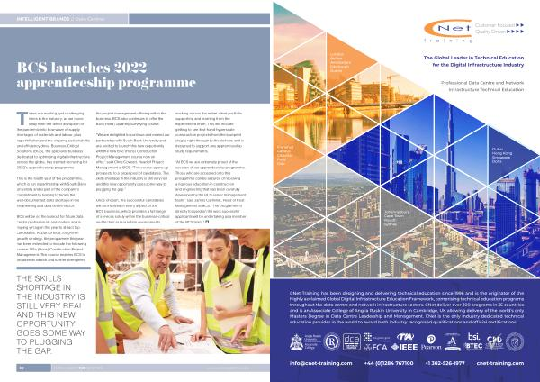 These are exciting , yet challenging times in the industry , as we move away from the direct disruption of the pandemic into bow wave of supply shortages of materials and labour , plus hyperinflation and the ongoing sustainability and efficiency drive . Business Critical Solutions ( BCS ), the specialist business dedicated to optimising digital infrastructure across the globe , has started recruiting for 2022 ’ s apprenticeship programme .