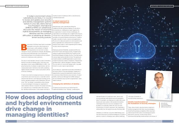 FEATURE : CLOUD SECURITY standard features of employee name , device and access privileges with behavioural and geographic data . For example , an employee in London who rarely travels and never works on the weekend should be challenged if they try to access a database from Australia on a Saturday . While the user can work frictionlessly on a day-to-day basis , the organisation still benefits from the layered security offered by IAM .