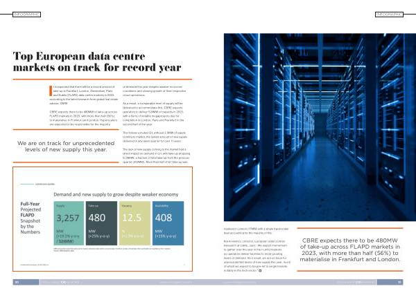 CBRE expects there to be 480MW of take-up across FLAPD markets in 2023 , with more than half ( 56 %) to materialise in Frankfurt and London .