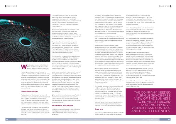 Another example is Epicor Enterprise Content Management ( Epicor ECM ), which gives the business the ability to store documents such as shipping notes , terms and conditions and customer-facing materials in the system . “ Epicor ECM has accelerated our initiative to reduce or eliminate paper trails and given us a single repository ,” said Finnon . He cited one example : “ Every machine runs on a test bed before shipping , which provides diagnostic information . With Epicor ECM , those test files are attached to the serial number of the product so if there is ever a support issue , our service engineers can easily access the initial factory diagnostics .” additional benefits . A major one is supporting Audiotonix ’ s sustainability initiatives , a key focus for Audiotonix . As an example , Finnon cited that several of the company ’ s manufacturing facilities are equipped with solar panels , saving approximately 35 % in energy consumption .