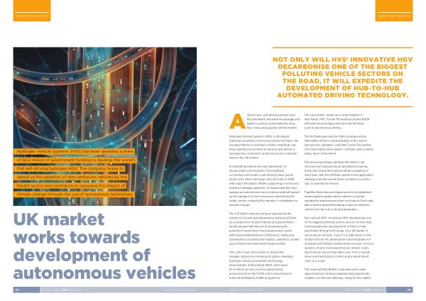 Hydrogen Vehicle Systems ( HVS ) has been awarded a share of £ 6.6 million of government funding to develop the world ’ s first self-driving hydrogen HGV . The company hopes to speed up the adoption of zero-emissions vehicles by the freight sector and contribute to lessening the impact of climate change through the use of autonomous technology .