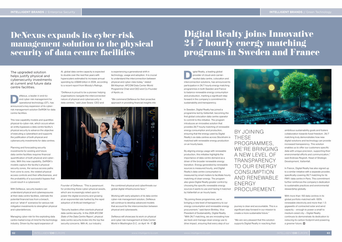 “ DeNexus is proud to be a pioneer helping organisations navigate the interconnected nature of physical and cybersecurity in data centres ,” said Jose Seara : CEO and is experiencing a generational shift in technology , usage and adoption . It is crucial to understand the interconnection between physical and cyber-risks today ,” stated Bill Kleyman : AFCOM Data Center World Programme Chair and CEO and Co-Founder of Apolo . us .
