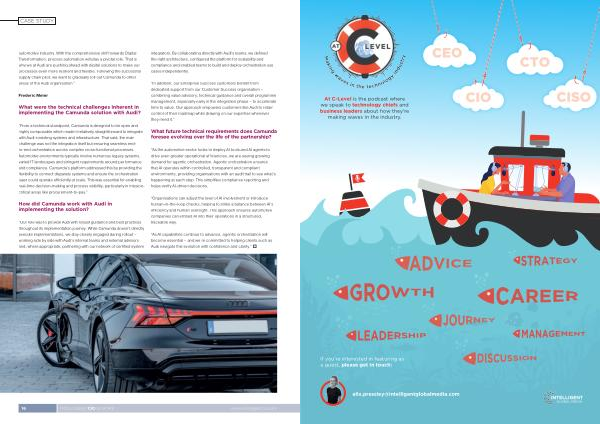 “ From a technical standpoint, Camunda is designed to be open and highly composable which made it relatively straightforward to integrate with Audi’ s existing systems and infrastructure. That said, the main challenge was not the integration itself but ensuring seamless endto-end orchestration across complex cross-functional processes. Automotive environments typically involve numerous legacy systems, varied IT landscapes and stringent requirements around performance and compliance. Camunda’ s platform addressed this by providing the flexibility to connect disparate systems and ensure the orchestration layer could operate efficiently at scale. This was essential for enabling real-time decision-making and process visibility, particularly in missioncritical areas like procurement-to-pay.”