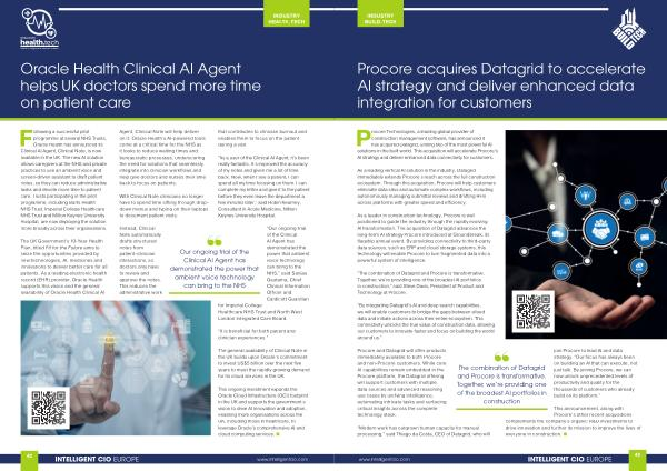 Following a successful pilot programme at several NHS Trusts, Oracle Health has announced its Clinical AI Agent, Clinical Note, is now available in the UK. The new AI solution allows caregivers at the NHS and private practices to use an ambient voice and screen-driven assistant to draft patient notes, so they can reduce administrative tasks and devote more time to patient care. Trusts participating in the pilot programme, including Barts Health NHS Trust, Imperial College Healthcare NHS Trust and Milton Keynes University Hospital, are now deploying the solution more broadly across their organisations.